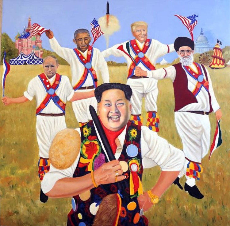 Entitled “The Motley Megalomaniac Morris men” this enormous canvas measures 100x100cm.